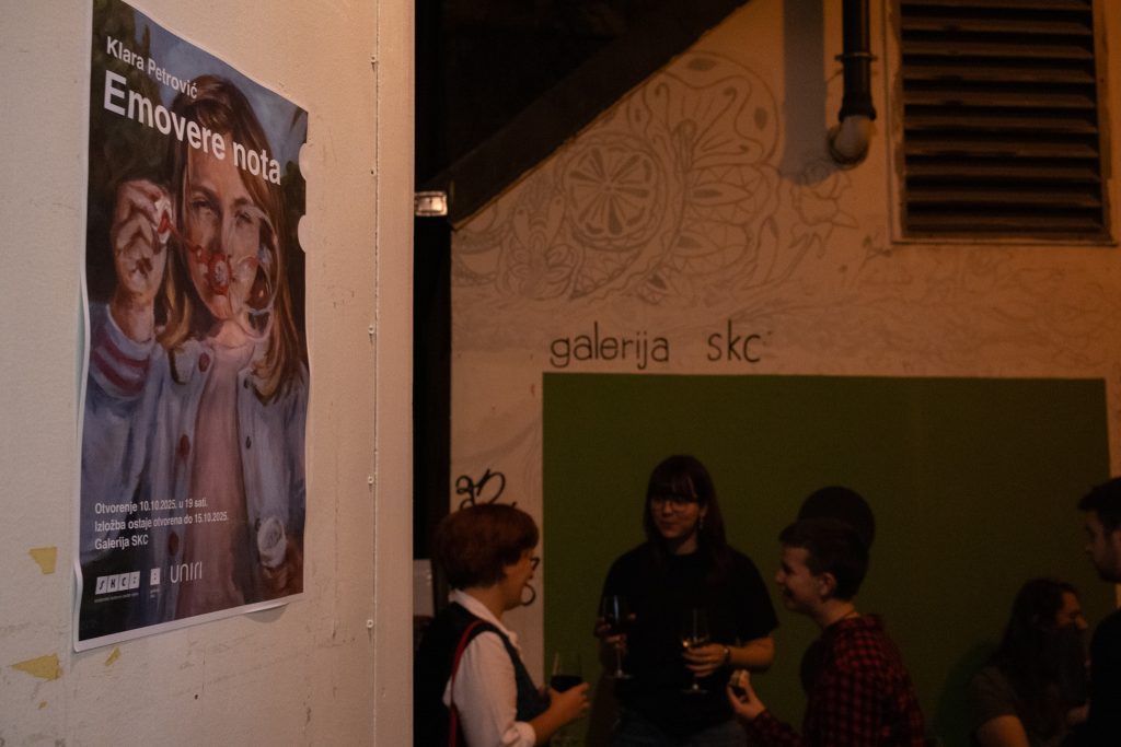 U petak, 10. listopada 2025. godine u 19 sati, u Galeriji SKC održano je otvorenje samostalne izložbe Klare Petrović, studentice Akademije primijenjenih umjetnosti u Rijeci, pod nazivom „Emovere nota“.