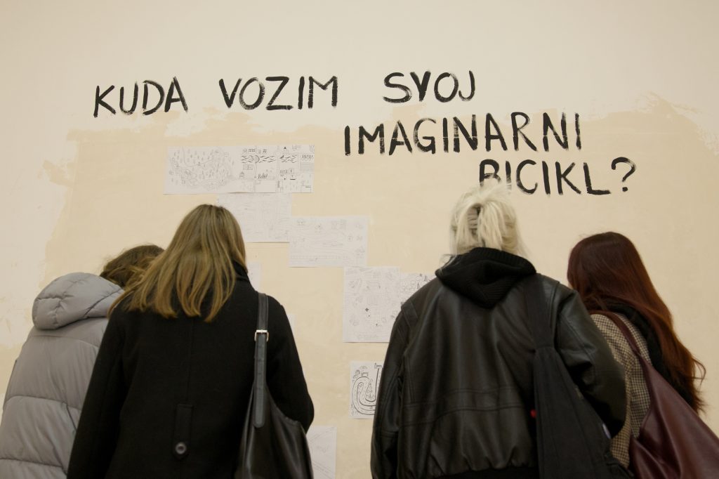 U suvremenom, akceleracionalističkom društvu koje kao da ubrzava prema apokalipsi, a ne boljitku, egzistencijalna pitanja postala su preča. Ipak, govoriti o egzistencijalizmu u njegovoj filozofskoj formi bilo bi apsurdno -sve što se odnosi na društvo kao totalitet mora se unutar tog istog društva pojaviti kao pojmovno operabilno i hermeneutički prohodno, kako bi bilo percipirano kao blisko i aktualno. Izložba pod nazivom Kuda vozim svoj imaginarni bicikl? ovaj problem sagledava iz kuta studentske populacije, promatrajući kako se širi problem odražava na jedan uži i specifični – status quo u studentskoj umjetničkoj produkciji i njezinoj valorizaciji – tako da ga, kroz studiju slučaja, čitamo kao pars pro toto.