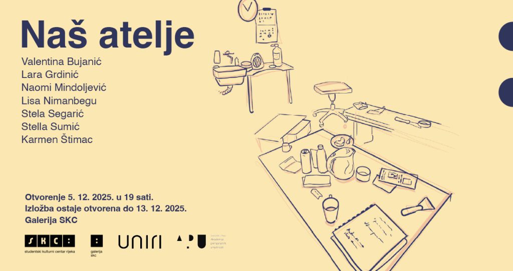U petak, 5. prosinca 2025. godine u 19 sati, u Galeriji SKC održat će se otvorenje skupne izložbe APURI studentica 1. godine diplomskog studija primijenjene umjetnosti, smjera kiparstvo, pod nazivom Naš atelje.